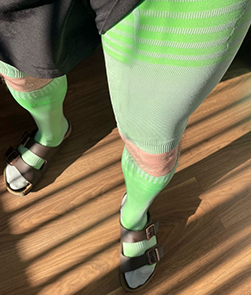Qilta Long socks and thigh sleeves are a delivery system. Qilta double layer garments have been designed, engineered and yarns selected to double wick formula in towards the skin thus ensuring maximum absorption. Our garments are long life, typically with a season long guarantee.